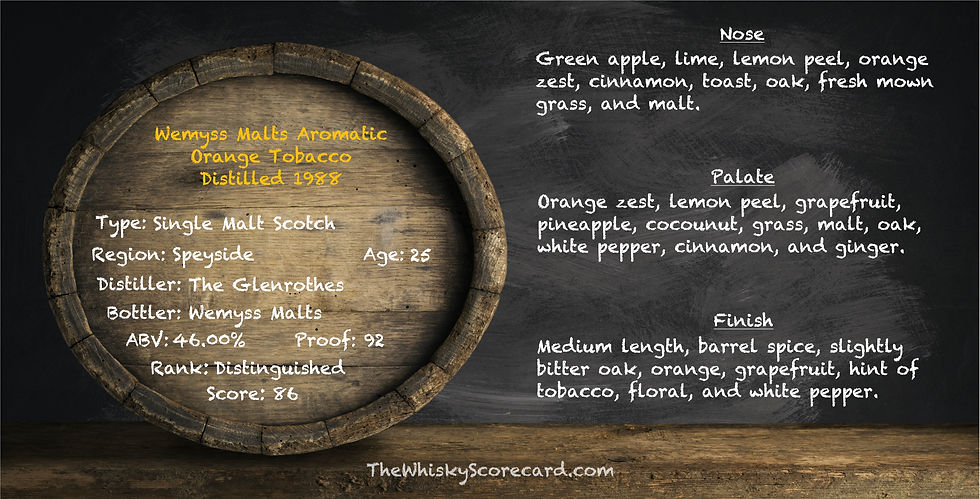 Wemyss Malts Aromatic Orange Tobacco Distilled 1988Man of StillDec 20, 20201 min readUpdated: Jul 31, 2021Single Malt Scotch